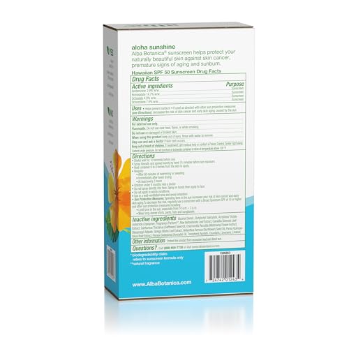 Experience the sun with confidence using Alba Botanica Hawaiian Coconut Sunscreen. This broad-spectrum SPF 50 spray offers powerful protection against harmful UV rays while being biodegradable and water-resistant for up to 80 minutes. Perfect for eco-conscious consumers, it contains no synthetic fragrances and is recommended by the Skin Cancer Foundation.